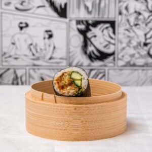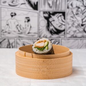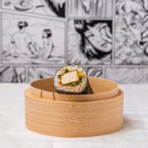 Vegetarian tempura white rice sushi roll (V)