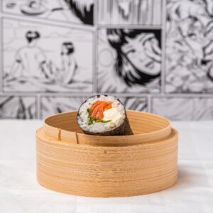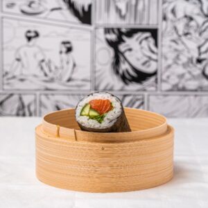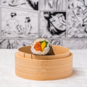Salmon cucumber white rice sushi roll