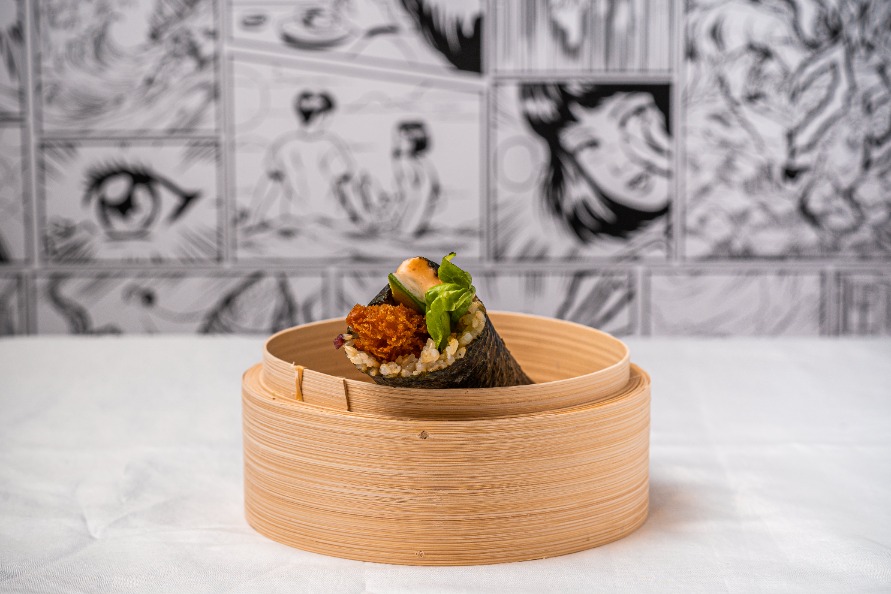 Spicy panko prawn avocado brown rice sushi roll